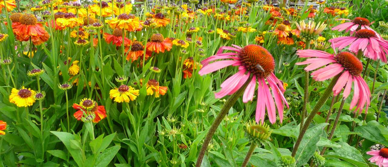 Echinacea, heleniums and rudbeckia are all great summer performers that look well planted in drifts through a mixed border. They are particularly suited to growing amongst grasses in a prairie style planting scheme and of course they look wonderful when grown together, with hundreds of varieties to choose from across the three genera. This is helped by the fact that they generally all flower around the same time, from around mid/late summer into early autumn, come in a variety of colours, from white to vibrant oranges, reds and pinks and can grow to numerous heights, so there's something for every garden and even for container growing. The fact that they do flower well into autumn, also means you can extend the season of summer colour in your borders.