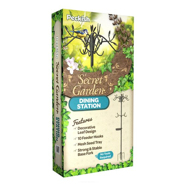 It is important to feed wild birds all year round. Peckish Secret Garden Dining Station has 10 feeder hooks to hang your feeders from.