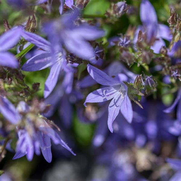 This low growing Campanula produces masses of small, star-shaped, blue flowers from summer into autumn and is a lovely plant to add as ground cover or at the front of a sunny border.