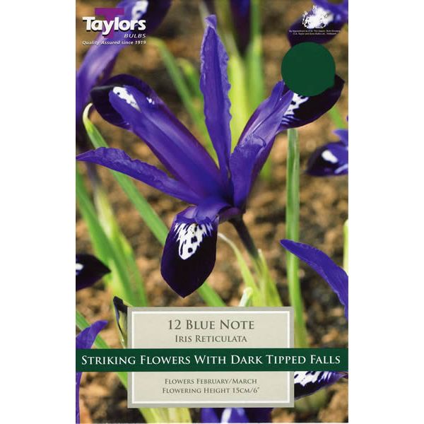 This dwarf Iris produces striking blue flowers with dark tips in early spring.