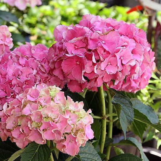 A bushy, relatively compact, deciduous hydrangea, with glossy, slightly toothed mid to dark green leaves that are tinted red in autumn. Large, rounded, flower-heads are dark pink on alkaline soil or lighter pink in acidic soil. Flowers are produced from mid to late summer. Its compact growing habit makes it suitable for a container.