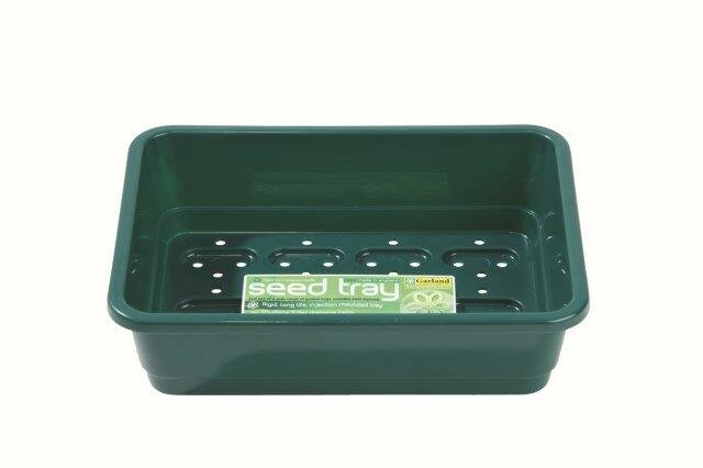 Small green seed tray with drainage holes