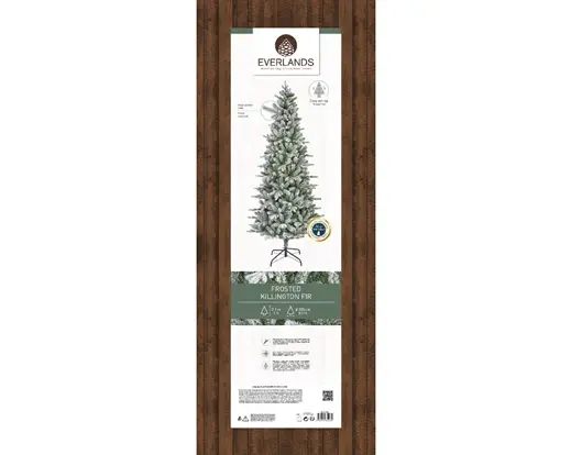The Kaemingk Everlands Killington Frosted Fir Christmas Tree 210 cm/ 7ft is a slim-profiled tree that exudes a realistic and natural look with its abundant full tips, designed for adorning purposes, with a frosted finish.