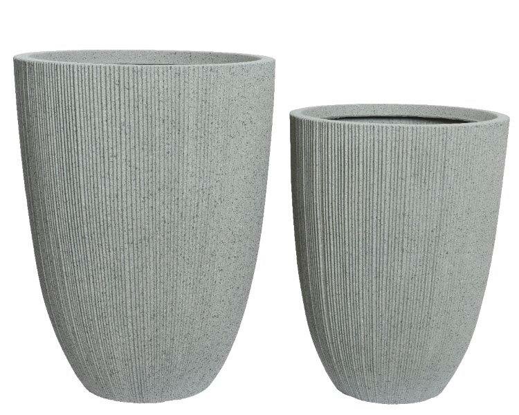 Tall 'Lennox' plastic container with grey ribbed concrete look finish suitable for indoor and outdoor use.