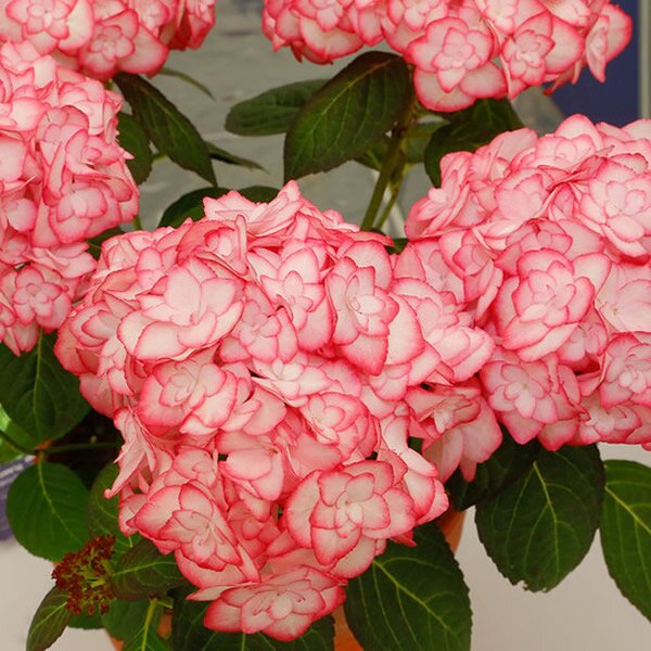 Winner of the RHS Chelsea Flower Show Plant of the Year in 2014, this hydrangea is still prized with its compact growth habit produced gorgeous double floret mophead flowers that are pale pink with a distinctive dark pink rim. Foliage becomes flushed with dark red in spring and autumn for added interest. Flowers are produced on new and old wood extending the flowering season.