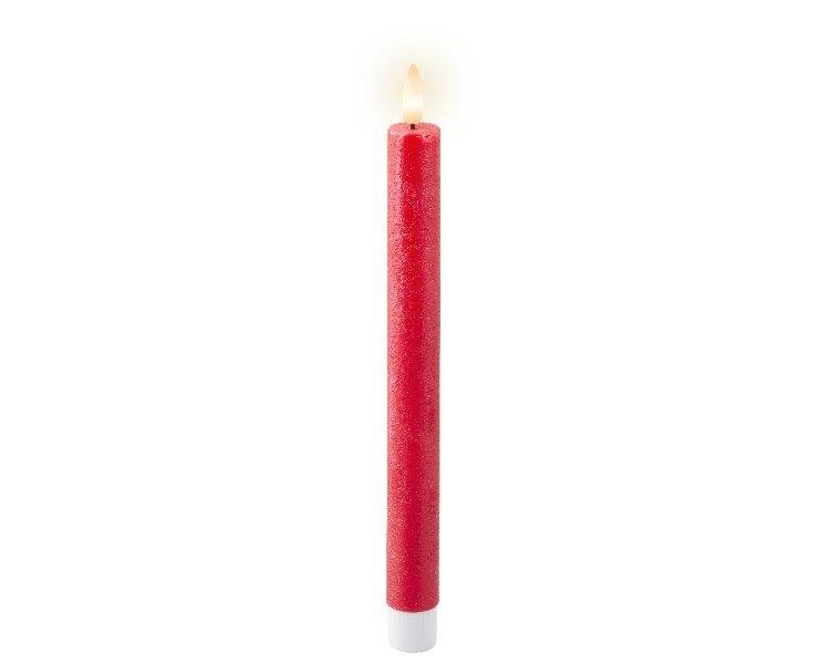 Red, LED wick dinner candle in wax effect with flat top and steady glow for indoor use