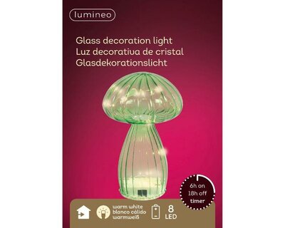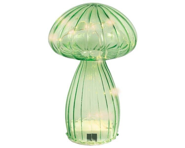 Green, Micro LED glass mushroom with steady glow for indoor use