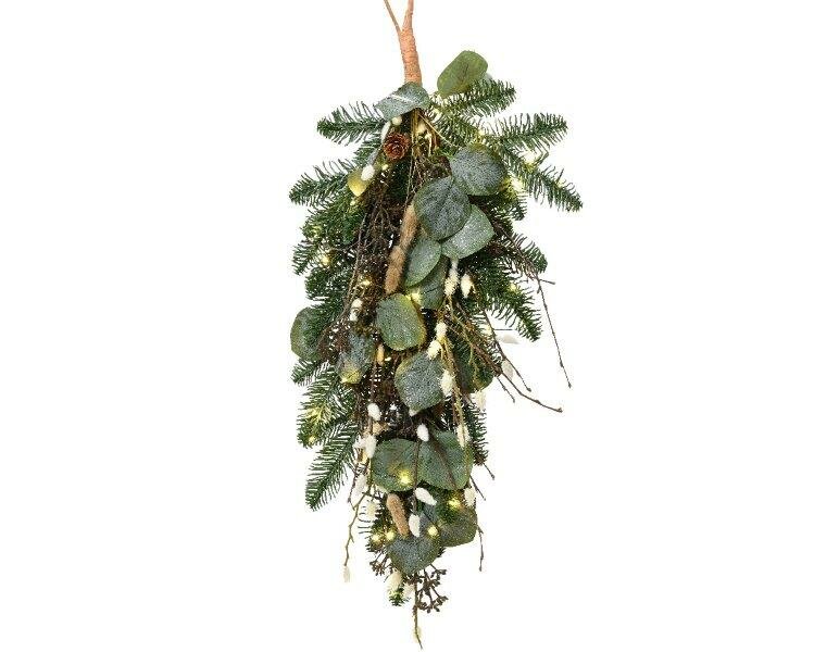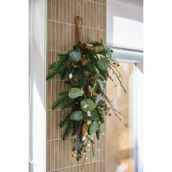 Tail grass bunch - frosted tail grass/pine-cone/white berry with 30 Micro LED lights for indoor use.