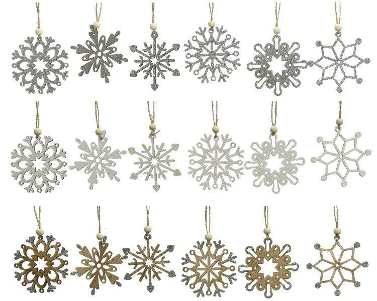 Snowflake - plywood with glitter in 18 designs (please state preference when order using numbers 1-18 from top left to bottom right).