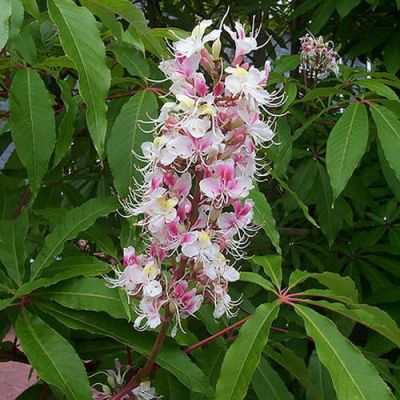 Also known as the 'Indian Horse Chestnut' this tree has large glossy green leaves and produces large 'candles' of creamy pink flowers in summer that are a valuable source of nectar for bees. Due to its size this is best grown in large gardens as specimen plant.