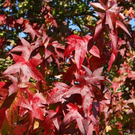 One of the most well known sweet-gum varieties available, this ornamental tree is loved for it's autumnal foliage that turns an amazing blackish red. It can grow quite large so is best suited to large gardens.