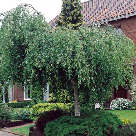 Also known as 'Young's Weeping Birch' this attractive hardy tree has arched branches with a dome shaped crown and will handle exposure well.