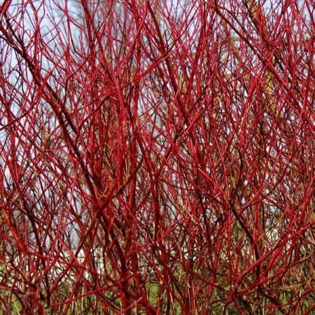 Medium sized deciduous shrub that produces a thicket of red stems that become bright crimson in winter. Once established this plant is best pruned back in spring in order to produce new vibrant coloured stems.