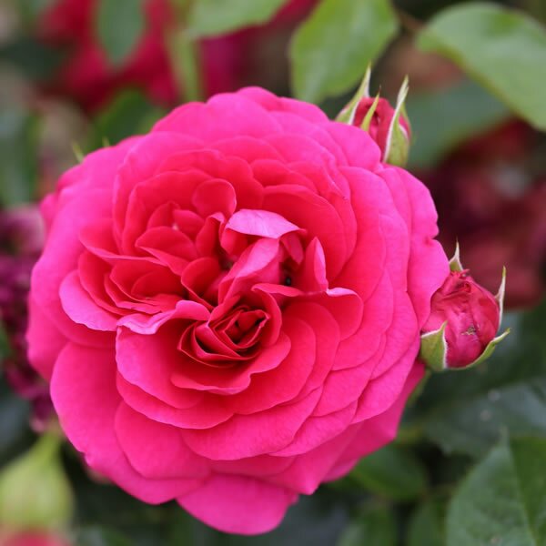 Compact floribunda rose that produces clusters of fragrant, fully double magenta pink blooms from summer into autumn, atop glossy mid-green foliage. Its compact nature makes it perfect for container growing, planting in groups within beds or placing along a border to appreciate its scent.