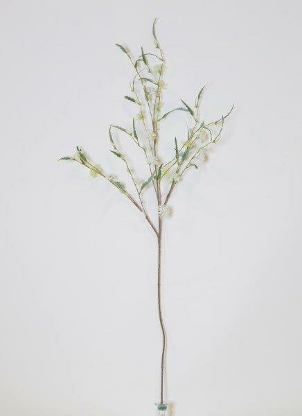 Artificial white lace flower spray on a long stem for use in flower arrangements and home décor.