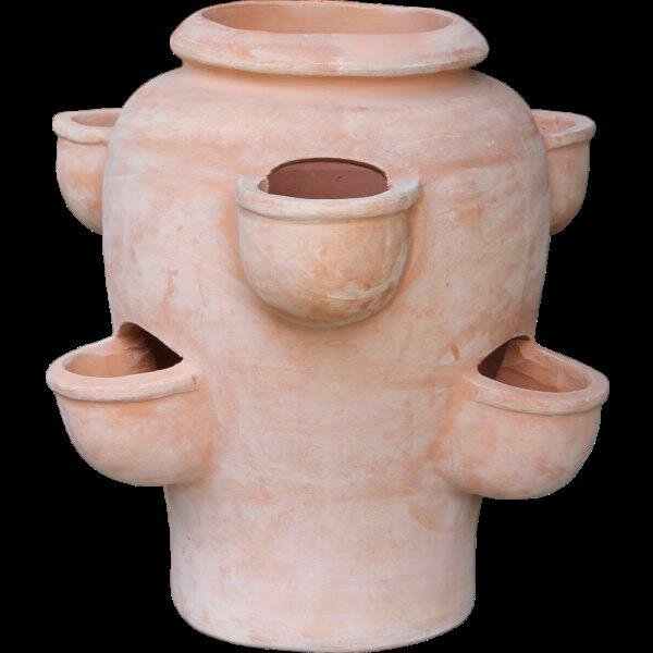Decorative terracotta clay strawberry planter from Lemonfield Pottery – perfect for growing those summer fruits!