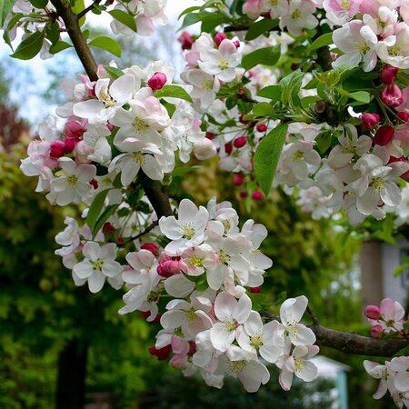 RHS Award winning crab-apple tree that produces lovely white blossoms in spring that emerge from pink/red buds. Attractive yellow-orange fruits follow, that can be used for producing pectin to be used when making jams with other fruits that are low in pectin (such as strawberry).