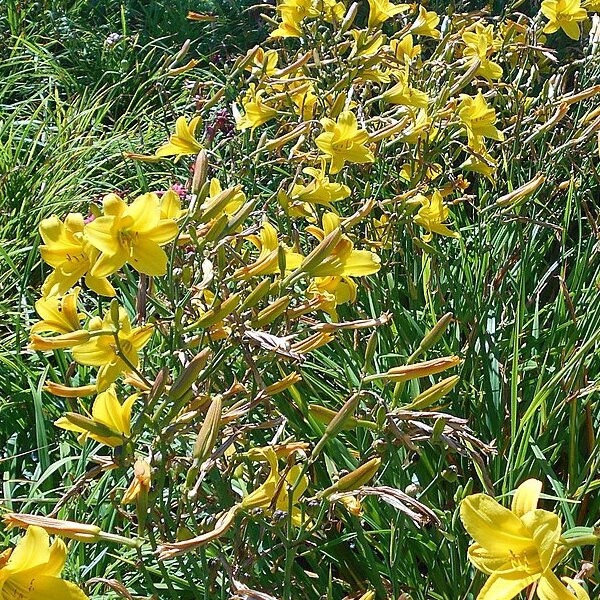 A vigorous daylily producing an open clump of narrow leaves in spring with numerous funnel shaped lemon flowers being produced on tall stems through the summer. A great plant for adding bright accents to a herbaceous border, whether contrasting with the likes of purple salvias or nepeta, or complementing 'hot' borders of red/orange dahlias, kniphofia and calendula.