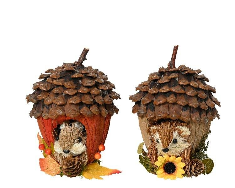 Decorative animal in pine-cone house available in 2 designs - please state preference in the comments when ordering