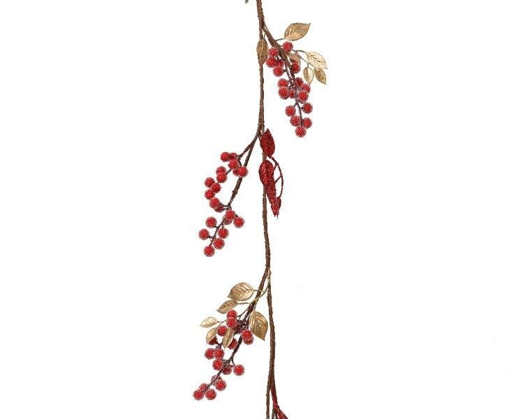 Garland with red foam berries and sugar glitter.