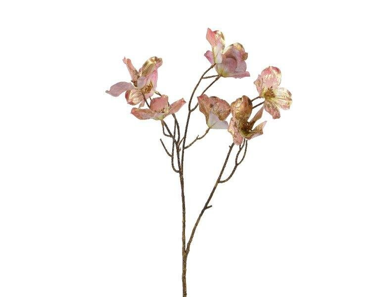 Polyester flower in pink and gold.