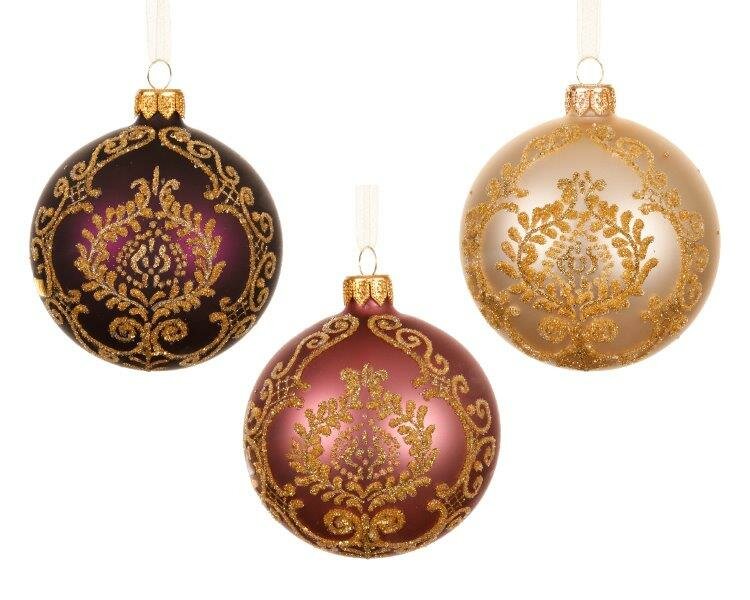 Glass bauble with gold baroque detail available in vintage pink, pearl and fig - please state preference in the comments when ordering
