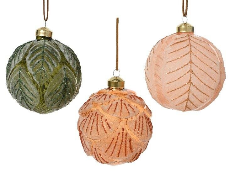 Glass bauble with engraved leaf available in three colours - please state preference in the comments when ordering