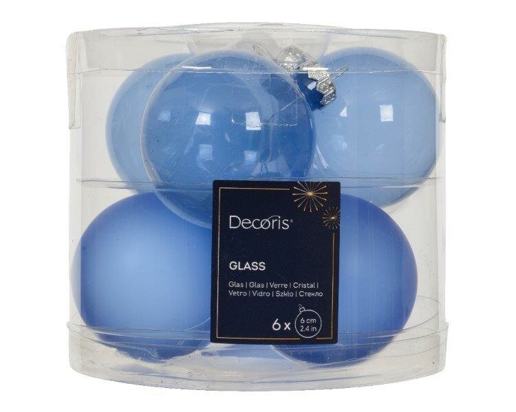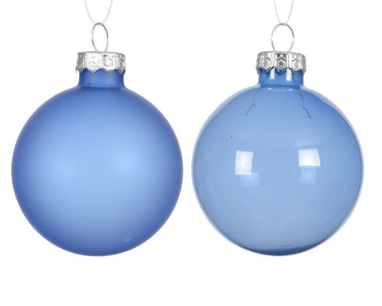 Sky blue glass bauble mix with unsilvered enamel & unsilvered matt mix – pack of 6.