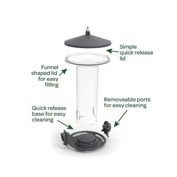The quick release base and removable seed ports make cleaning a breeze, ensuring your feeder stays fresh and hygienic for your feathered friends. With the Peckish Funnel Feeder, birdwatching becomes a truly enjoyable and hassle free experience.