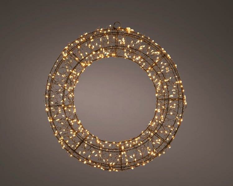 Micro LED wreath with 1800 steady lights on metal frame suitable for outdoor use.