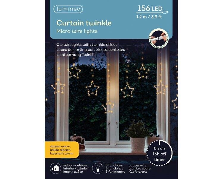156 Micro LED curtain lights with 8 function twinkle effect suitable for outdoor use
