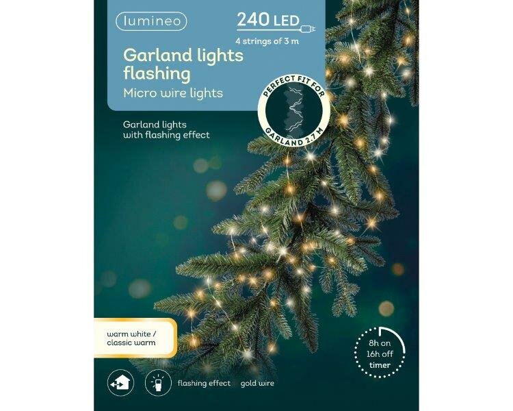 240 Micro LED garland lights with flashing effect suitable for outdoor use