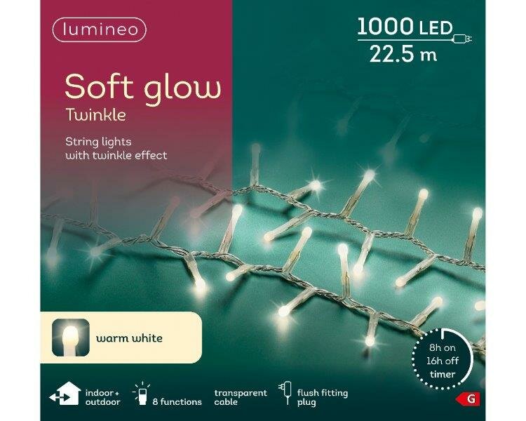 1000 LED soft glow compact lights with 8 function twinkle effect suitable for outdoor use