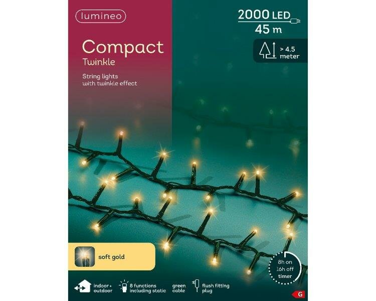 2000 LED soft glow compact lights with 8 function twinkle effect suitable for outdoor use