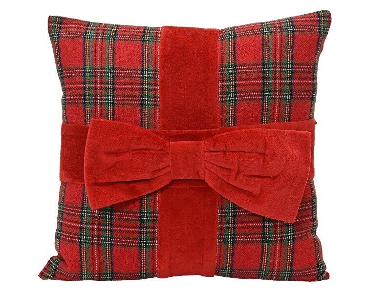 Check Cushion with bow - 100% Cotton outer and 100% polyester filling.