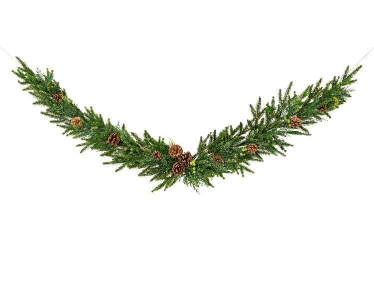 6ft Soft pinecone garland with pinecones and green berries for indoor use
