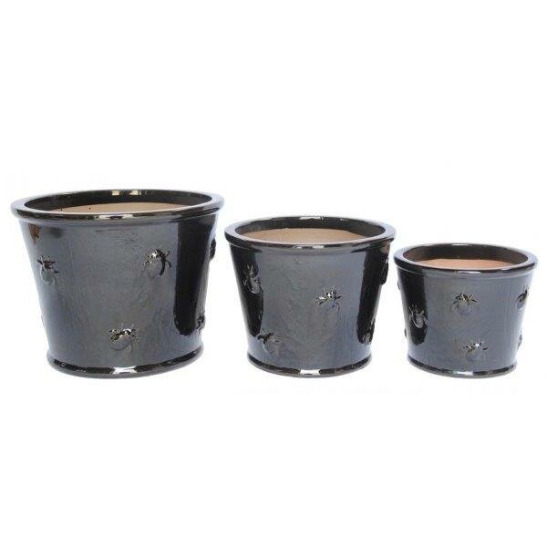 Black glazed clay planter with 'Bee' design from Lemonfield Pottery.