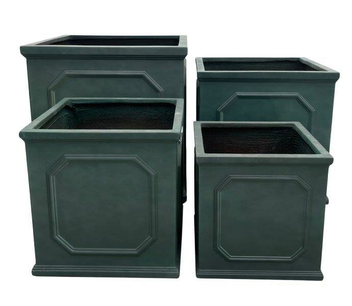 Square Frame fibre clay planter with a vintage green finish from Lemonfield Pottery.
