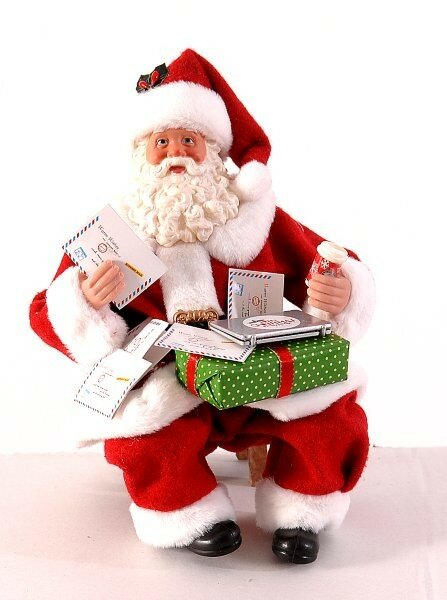 Santa Claus figurine with gift, envelopes