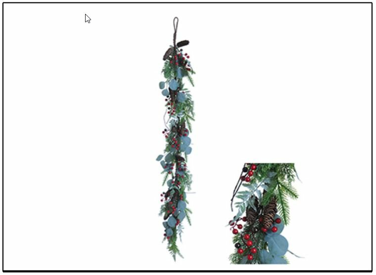 1.3m artificial garland with red berries, pine cones and eucalyputus detail.