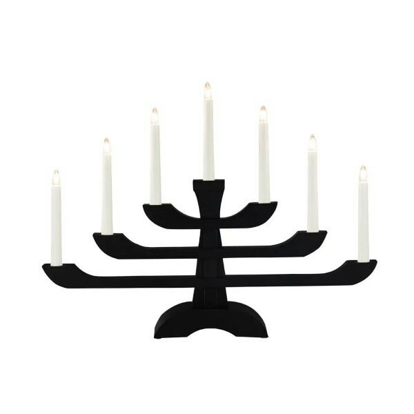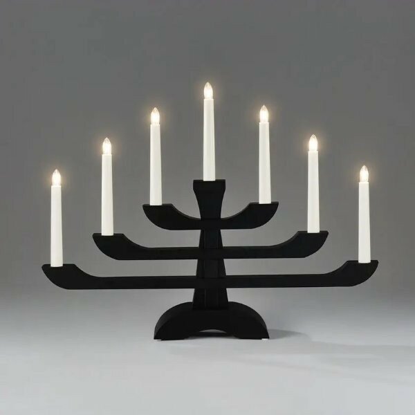 7 Bulb Wooden Candlestick in retro matt black – perfect for the dining table, windowsill or side-unit. Powered by mains.