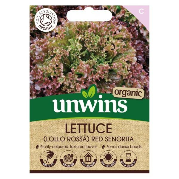 Unwins Organic Lollo Rossa Lettuce Red Senorita have richly-coloured, textured leaves, and forms dense heads. The attractive red and green frilled leaves have a crisp texture with a great peppery flavour.