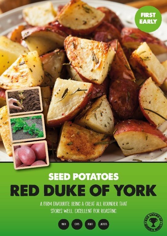 Red Duke of York is a fast-growing variety that produces large, oval-shaped, red-skinned tubers with light-yellow flesh and a superb taste.