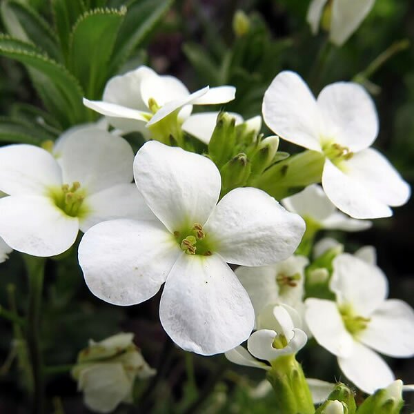 A mat-forming, evergreen mountain rock-cress this herbaceous perennial develops loose rosettes of mid-green leaves which are covered in fragrant white, four-petalled flowers, from late spring to summer. Best suited to rock/gravel gardens, used as edging to well drained borders or adding to container displays, they can also be used as useful ground-cover.