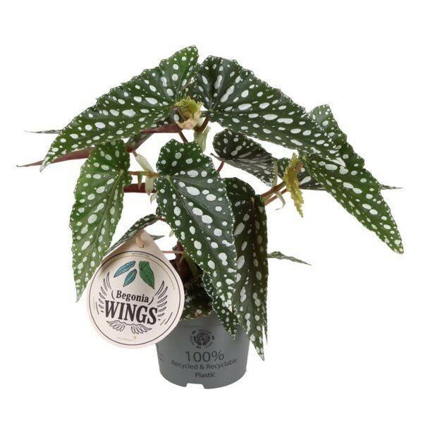 Compact maculata variety of begonia, as the name suggests, with long, matt green leaves dotted with white spots on bamboo like canes. Enjoys humidity, so ideal plant for bathrooms and kitchens.