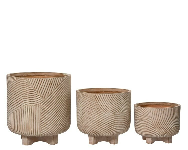 'Kane' fibre clay planter with wavy design suitable for indoor/outdoor use.
