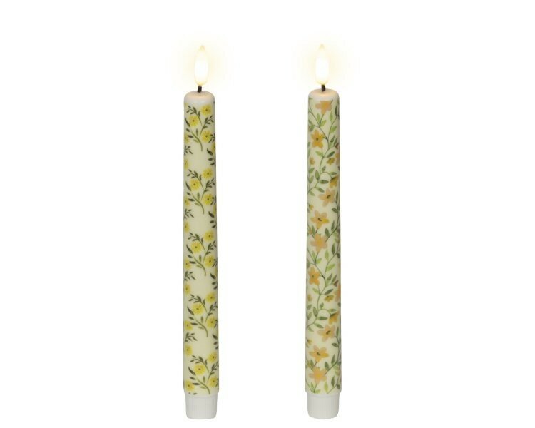 Pack of 2 flower design LED dinner candles – operates with 2 AA batteries (not included)