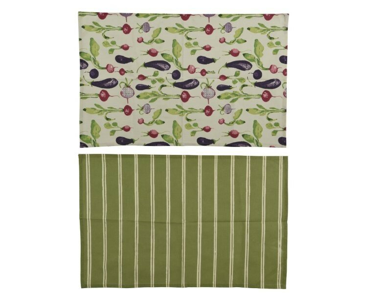 Tea towel cotton rectangle with stripe and fig & veggies