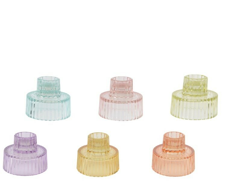 Transparent glass candleholder available in 6 colours - please state preference when ordering online.
