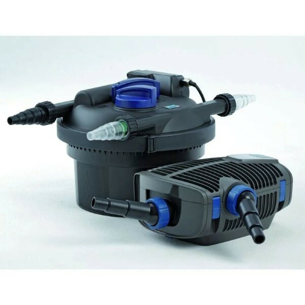 Suitable for ponds up to 3,000 litres – an ideal combination of FiltoClear pressure filter with integrated UVC and matching Aquamax Eco filter pump